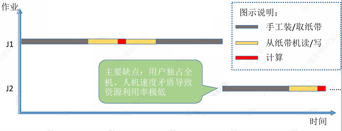 没有人机交互功能,提交作业后只能等待 计算机处理完成,无法进行调试、参数输入
