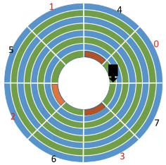 假设某磁盘有8个柱面/磁道(假设最内侧柱面/磁道号为0 ), 4个盘面,8个扇区。且需要连续读取物理地址(00,000,000)~(00,001,111)的扇区
