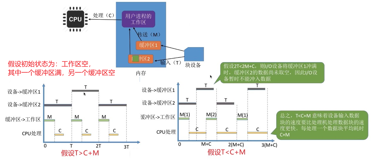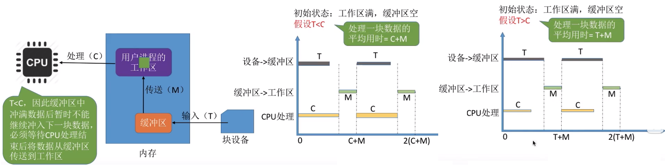 操作系统在主存中为其分配一个缓冲区,缓冲区非空时仅能读出,不能写入;当缓冲区为空,只有写满才能开始读出。
