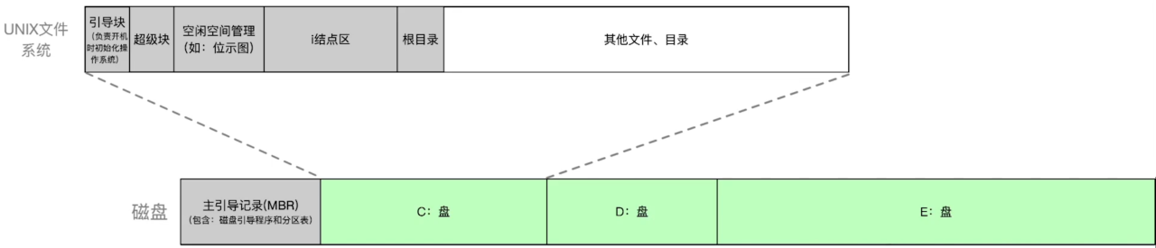- 将磁盘分区,每个分区由若干柱面组成(即分为我们熟悉的C盘、D盘、E盘)