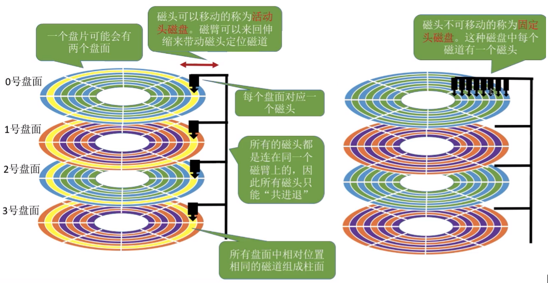 - 移动磁头的时间:假设磁头匀速移动,每跨越一 个磁道耗时为m,总共需要跨越n条磁道,耗时n*m。