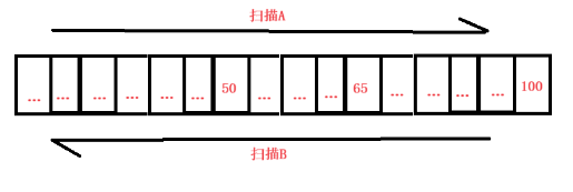 - 对于各个位置磁道的响应频率不平均。假设扫描A和扫描B是连续的两次扫描,对于100而言,扫描A刚经过,扫描B就会再次扫描;而对于50而言,扫描A经过后,等等扫描B经过,之间需要耗费更长时间等待。