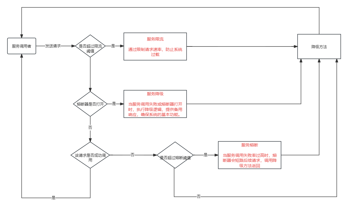 服务降级Fallback:服务不可用或响应时间过长,就返回一个备选响应,避免调用方和调用链路上游阻塞,使得故障在分布式系统中的蔓延