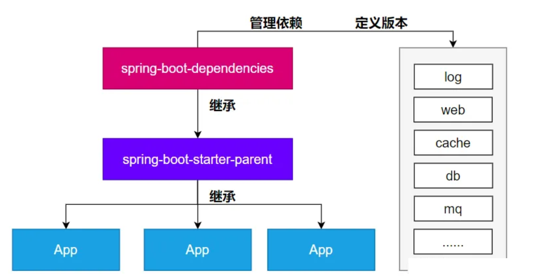 每个boot项目都有一个父项目spring-boot-starter-parent,parent的父项目是spring-boot-dependencies,父项目版本仲裁中心,把所有常见的jar的依赖版本都声明好了。