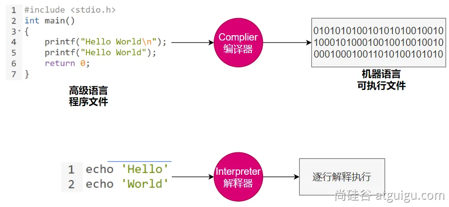 | 可移植性(跨平台) | 不同平台需要重新编译目标平台代码 | 同一份源码可以跨平台执行,因为每个平台会开发对应的解释器 |