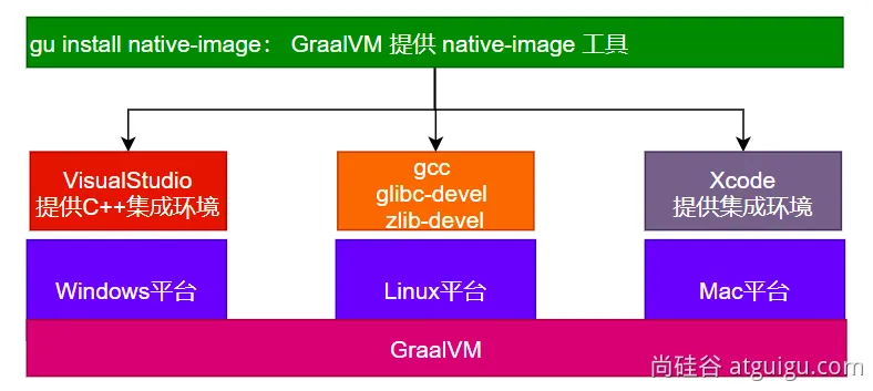 - 把应用打包成能适配本机平台 的可执行文件(机器码、本地镜像)