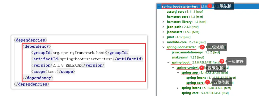 - 层级优先原则:不同层级出现依赖冲突,会先剔除深优先级的依赖,即层级越浅,优先级越高。