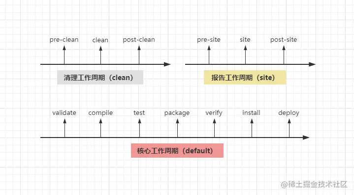 同一生命周期内,执行后面的命令,前面的所有命令会自动执行,如执行install会从Validate开始执行直到install