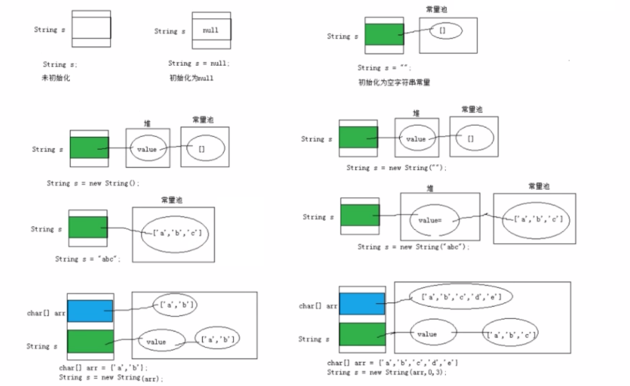 - 未初始化的数组默认值:int:0、double:0.0、String:null、char:编码为0的字符